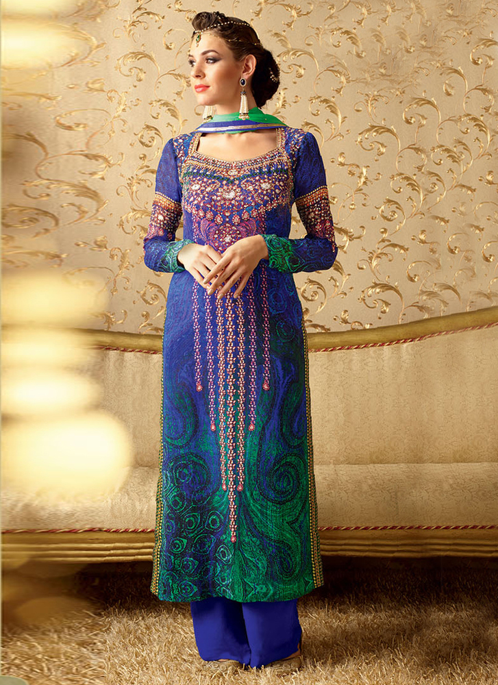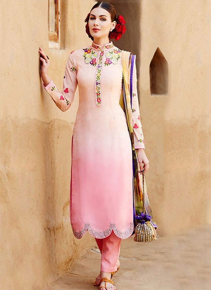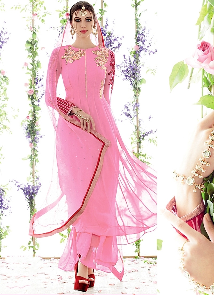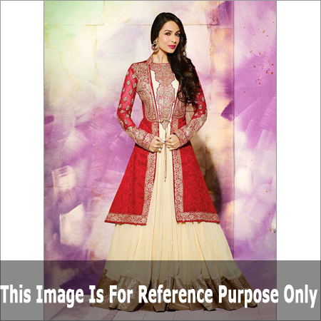 We are instrumental in trading a qualitative range of Designer Suits In Ready Stock including Malaika Arora Khan Peach Georgette Palazzo Churidar Suit, Adorable Red Net Anarkali Suit, Mod Resham Work Multi Colour Bamber Georgette Designer Suit etc.