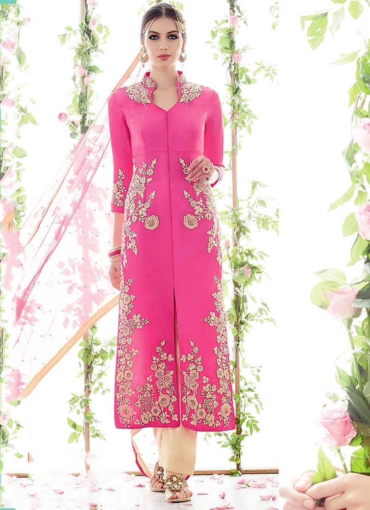 We are instrumental in trading a qualitative range of Designer Suits In Ready Stock including Malaika Arora Khan Black Georgette Long Anarkali Suits, Malaika Arora Khan Red Georgette Pencil Cut Anarkali Suit, Artistic Hot Pink Cotton Satin Palazzo Churidar Suit etc.