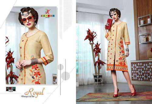 We are instrumental in trading a qualitative range of Embroidered Kurti including Emboidery Kurti, Designer Chiffon Kurti, Hand Embroidered Kurtis etc.