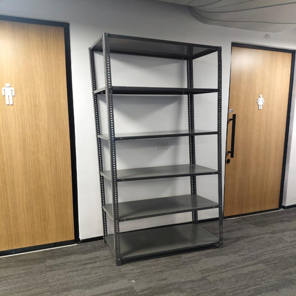 Warehouse Slotted Angle Rack - Stainless Steel, 6 Feet Height, Grey Color | Customizable Size for Optimal Warehouse Storage Solutions