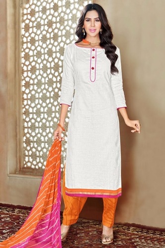 We are instrumental in trading a qualitative range of Dress Material including WHITE COTTON DRESS, Stitched Salwar Suits, BROWN PRINTED SUIT etc.