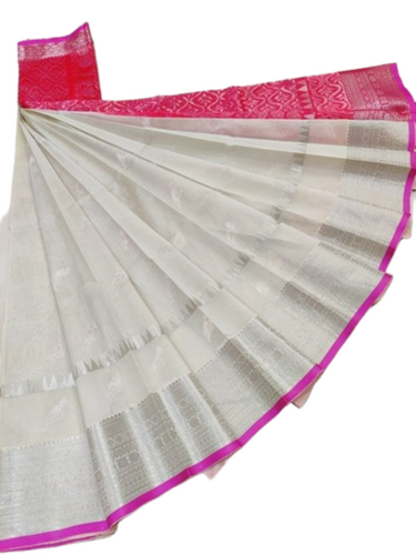 Soft Silk Saree With Beautiful Zari Checks Design - Color: Grey