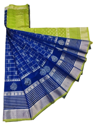 Handloom Soft Silk Saree With Beautiful Zari Checks Design - Color: Light Blue