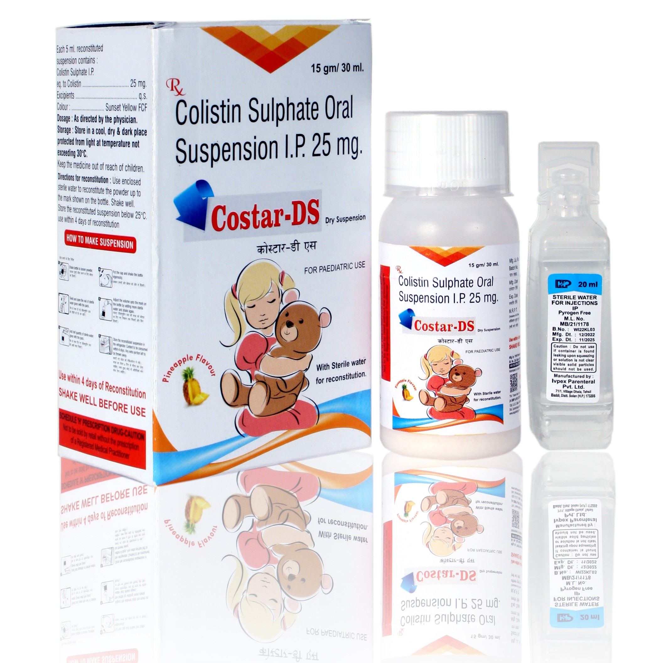 | - | - | Colistin Sulfate 25 mg/5ml | 85 INR (Approx.) |